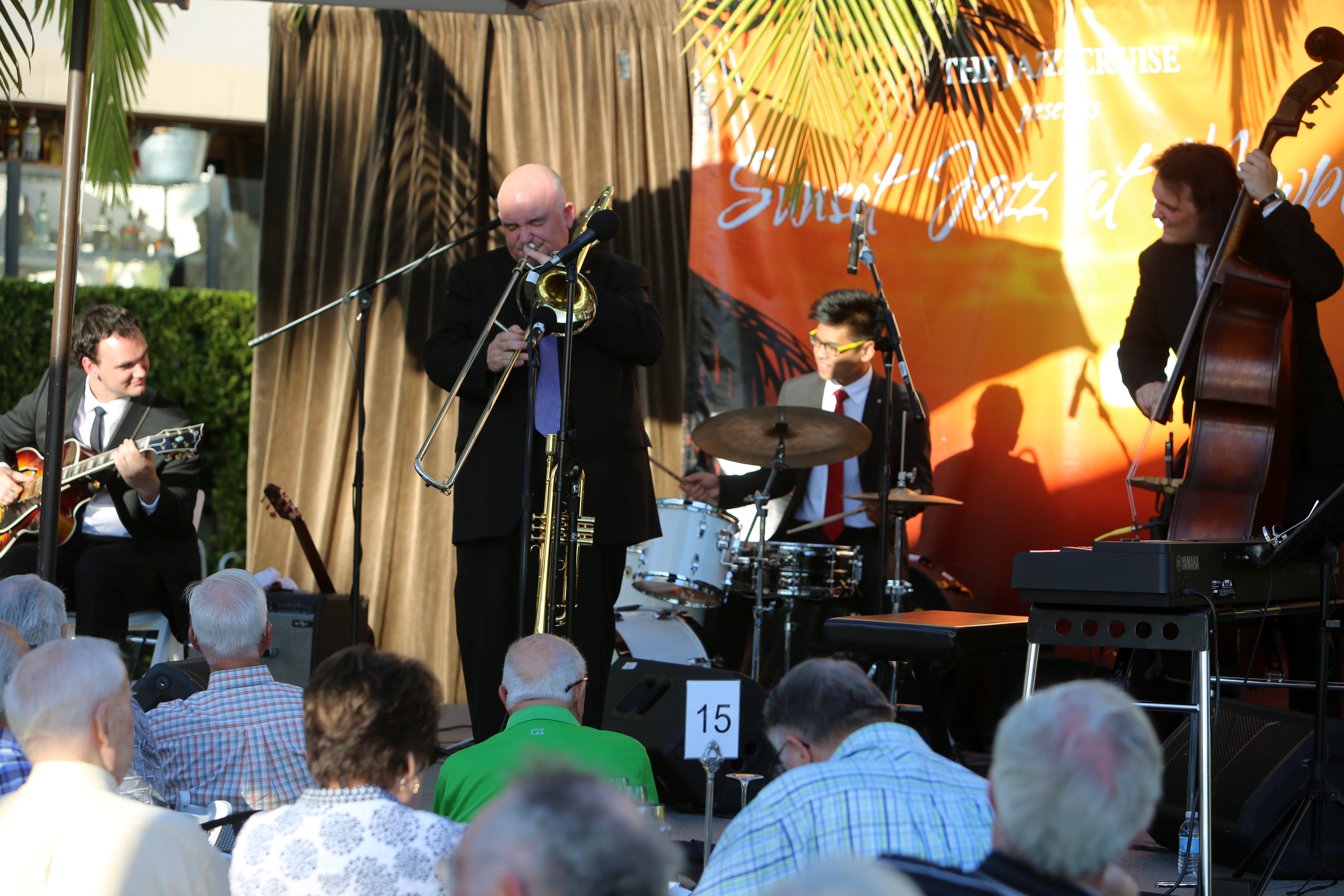 The Sunset Jazz Concerts at Newport is in its seventh year under the effective leadership of hosts Joe Rothman and John McClure. Morrison has been a well-received guest at Sunset Jazz and always makes his show a huge success. These summer concerts are held outside with beautiful weather in Marriott’s Rose Gardens. Host Rothman makes lively announcements of upcoming concerts and introduces the band, always with a good dose of humor.